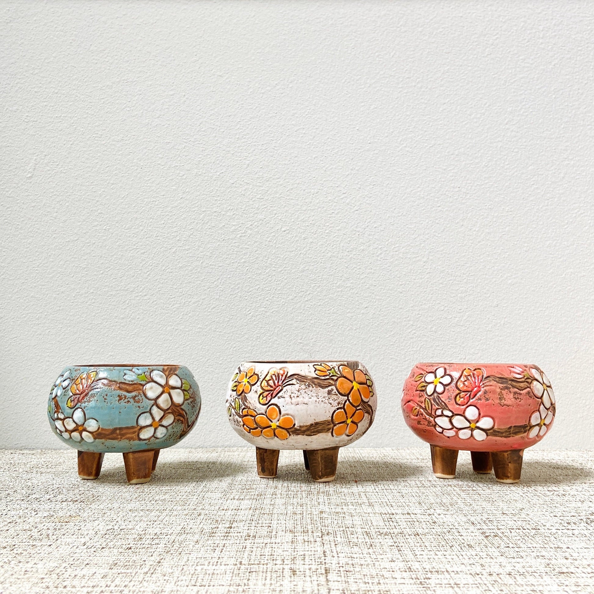 This pot is perfect for holding small succulents, succulent clusters, assorted succulent designs, and other small plants. The tall legs of the pot help with air circulation from the drainage hole, lowering the chances of root rot.