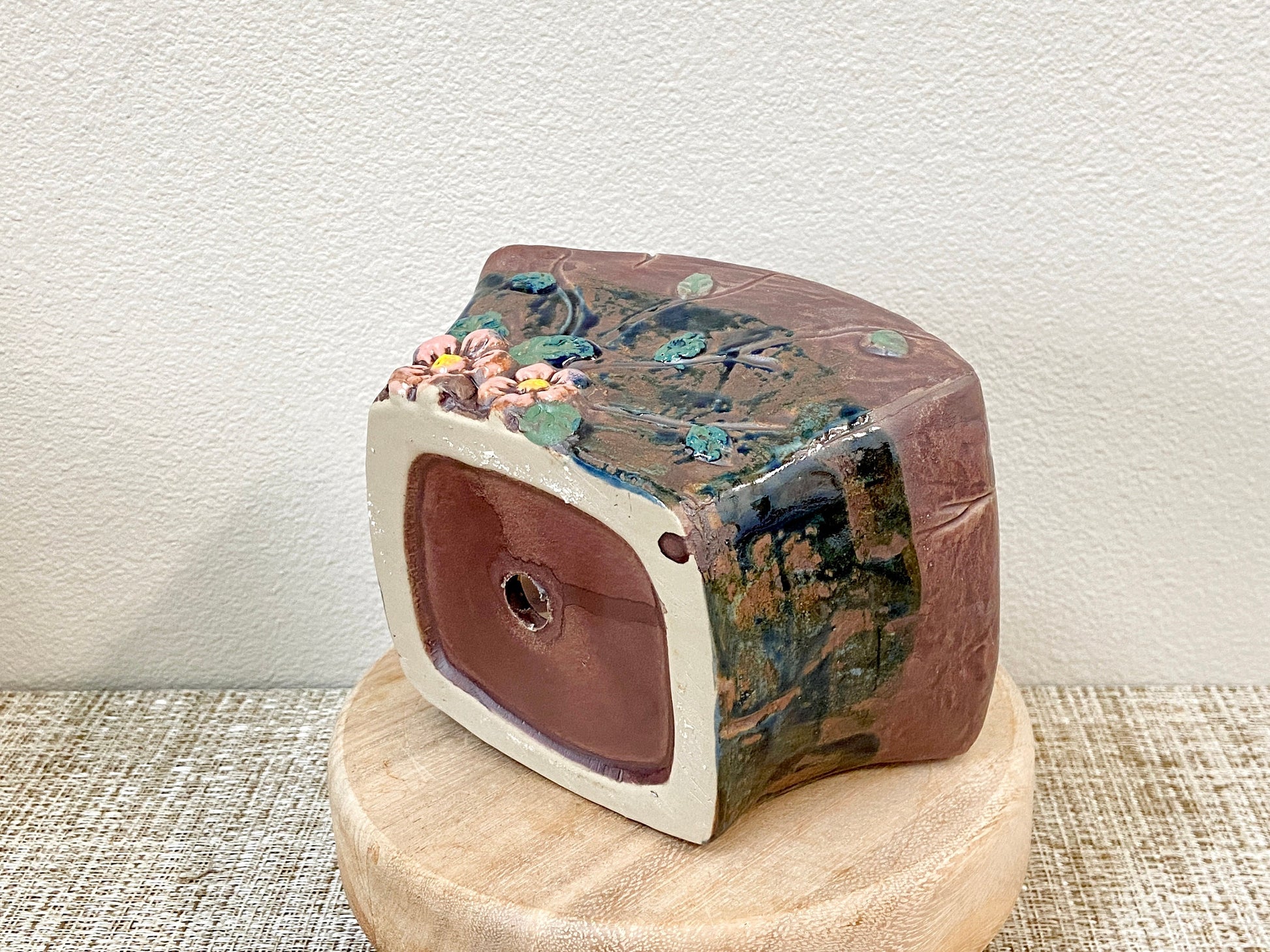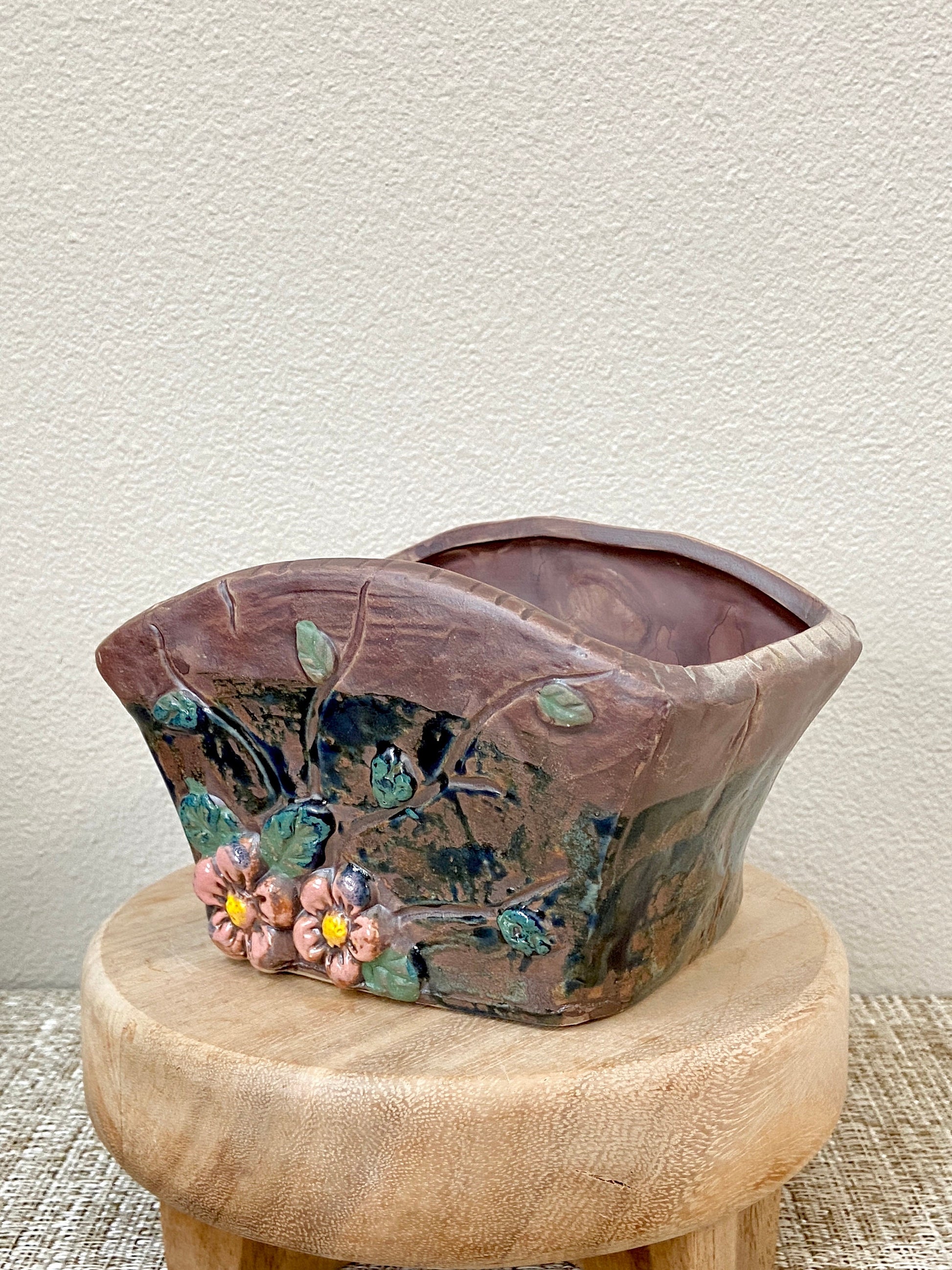 This pot is great for large succulents and succulent arrangements. It has a large, curved, rectangular opening. Its stable build and convenient depth allows for an easy potting process. A drainage hole is included with the pot.