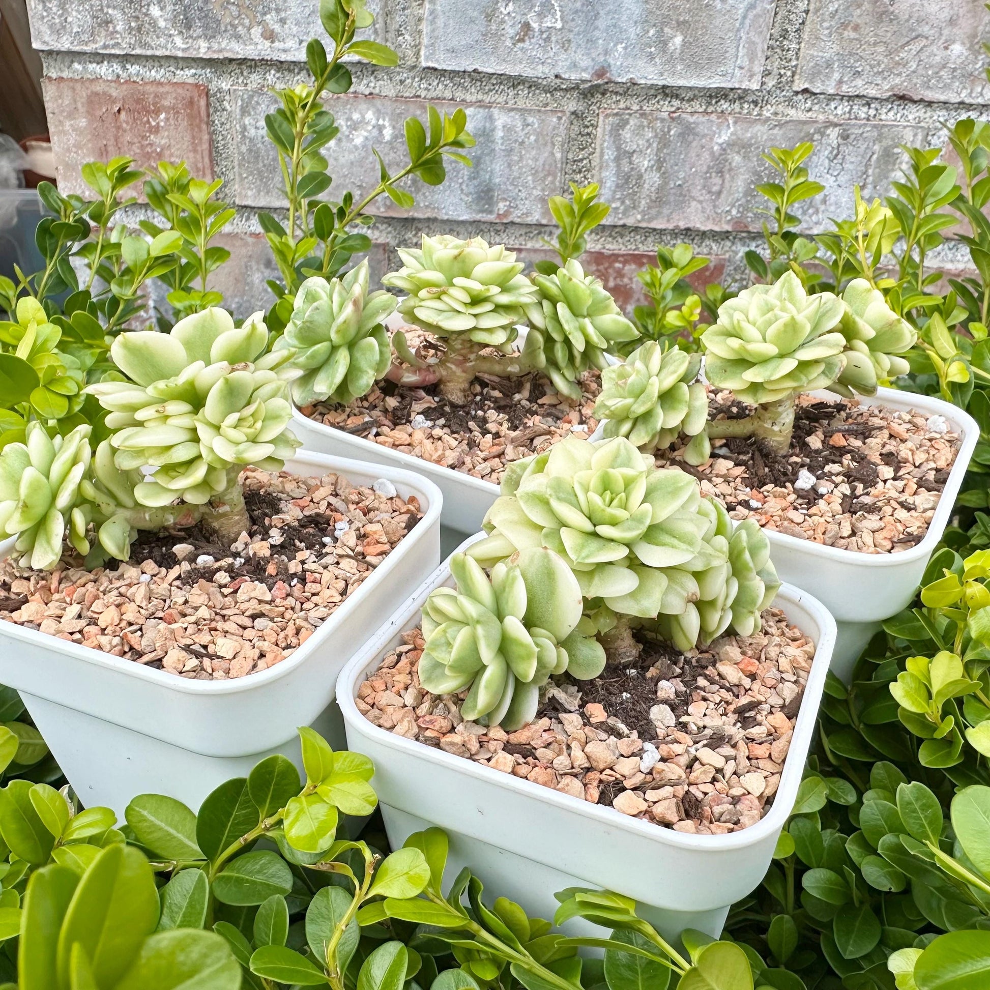 Our succulents are shipped bare-root (unless otherwise specified) to ensure they arrive in good condition. We wrap them in tissue paper, which is more breathable for plants than plastic, and pack them in sturdy boxes. For fragile succulents or those with multiple stems, we take extra care by gently stuffing them with cotton.