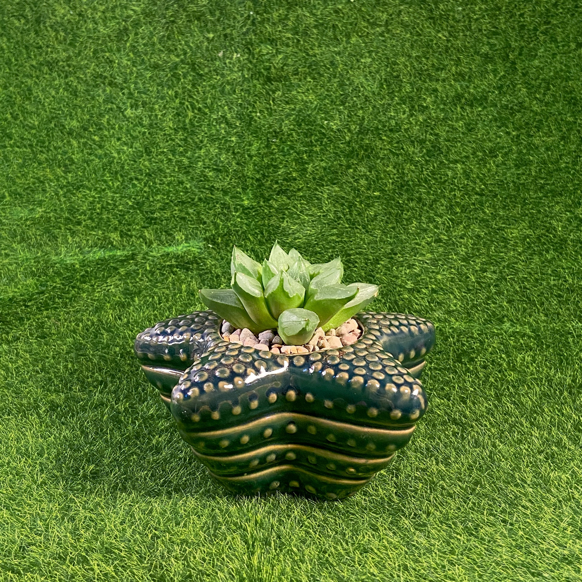 This succulent is shipped in its planter. Upon arrival, the succulent is ready to decorate your space! No repotting is necessary.