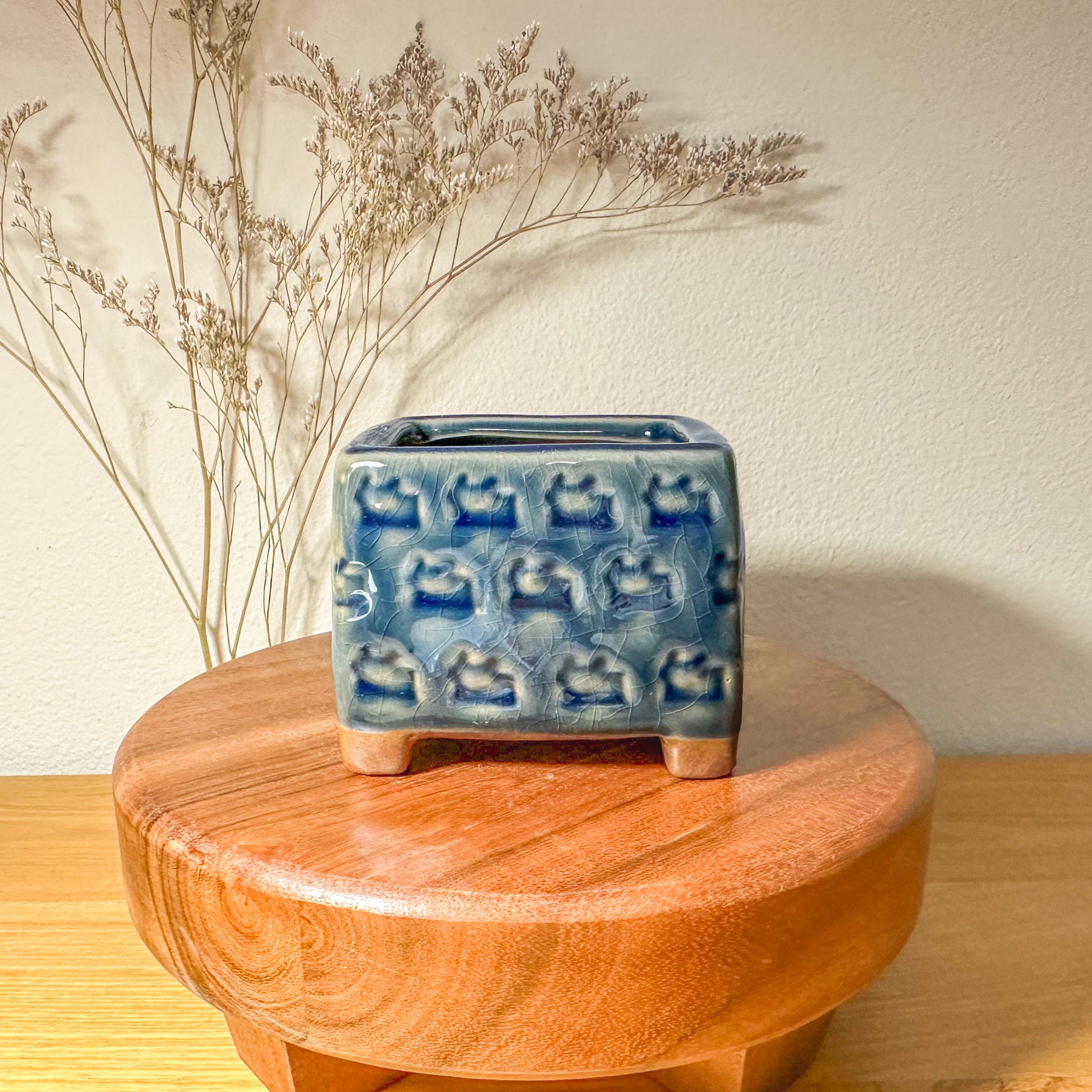 This set of planters features a smooth and shiny outer glaze. Each pot includes a drainage hole. Small legs on the pots allow airflow to and from the drainage hole, helping plant roots to stay healthy.