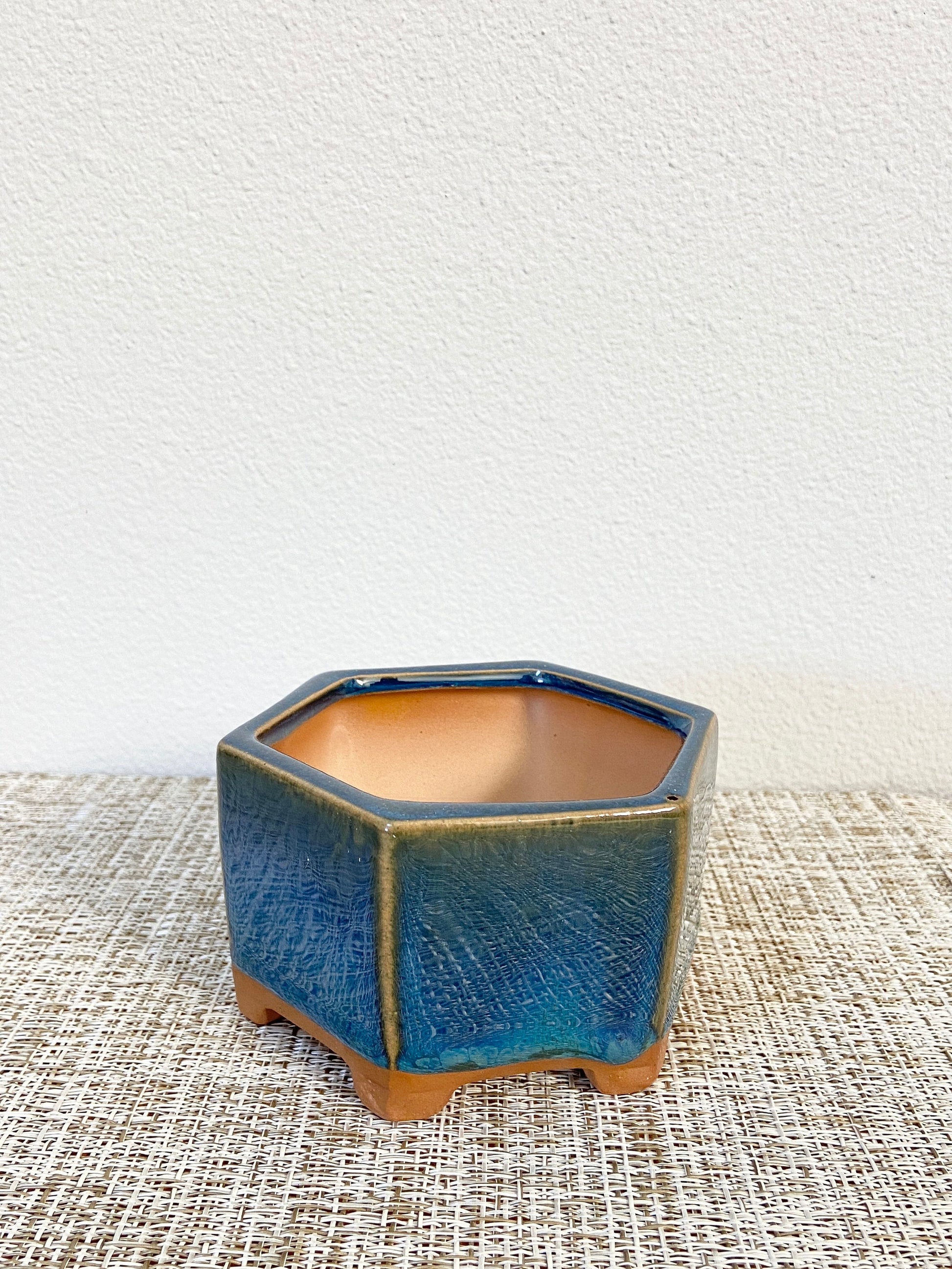 Hexagon pot: 4"L x 3.5"W x 2.3"H