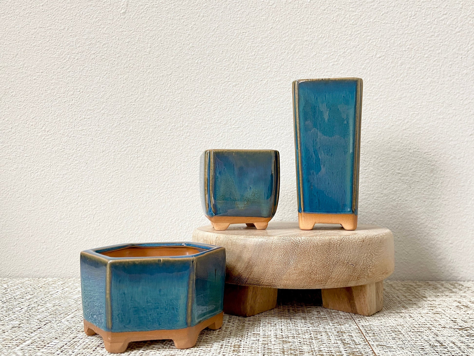 This set of planters features a smooth and shiny outer glaze. Interiors are not glazed for better air flow to the plant.